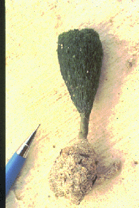 calcified with age. Found in bays and on sandy bottoms.