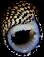 margin. Colour checkered black and white. This is a shallow water organism;