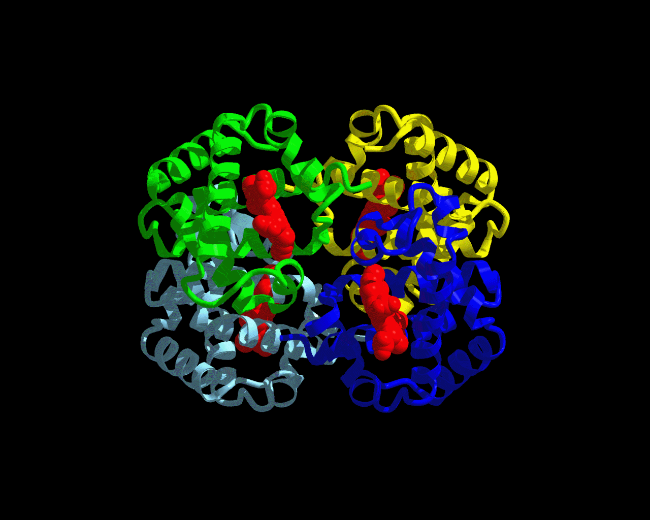 Cetaceans have a high amount of myoglobin in the muscle tissue. This iron-rich protein functions somewhat like hemoglobin in the blood. It binds with oxygen and can be stored for a period of time, improving the oxygenation efficiency to working muscles. (Zahn, 1988) |