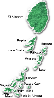 The Grenadine Islands are composed of all islands shown except St. Vincent.