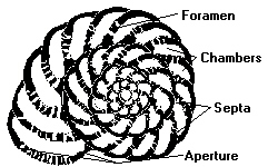 The last sketch shows a simple cross-section of a foraminifera showing