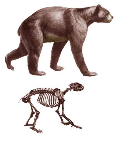 The closest ancestor to the Shortfaced bear is the Spectacled bear of South America.