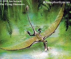 The term Pterosaur refers to two distinct sub-families: the primitive Rhamphorhynchoids and the advanced Pterodactyloids. The Rhamphorhynchoids appeared suddenly during the Late Triassic and remained the sole flying vertebrates until the Late Jurassic. It was during the Late Jurassic that Pterodactyloids first appeared. The two subfamilies competed amongst one another and by the Early Cretaceous only the Pterodactyloids remained. |