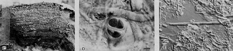 from marine microbial mat; e) Filamentous cyanobacteria (Awramik, 1972)