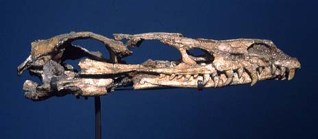 | A specimen of Velociraptor was found that contained on the roof of the skull, a row of parallel holes. The holes matched the size and spacing of teeth in the upper jaw of another Velociraptor. The tooth punctures must have killed the animal because they went through the skull and would have entered brain tissue. There wasn't much sign of scavenging on the other bones which means that the animal was likely the loser in a fight and didn't recieve the puncture marks after its death. The fight may have been for territory gain or for the right to mate with a female. Although there is no direct evidence of cannibalism in Velociraptors, it has been observed in other theropods. (Novacek, 1996) |